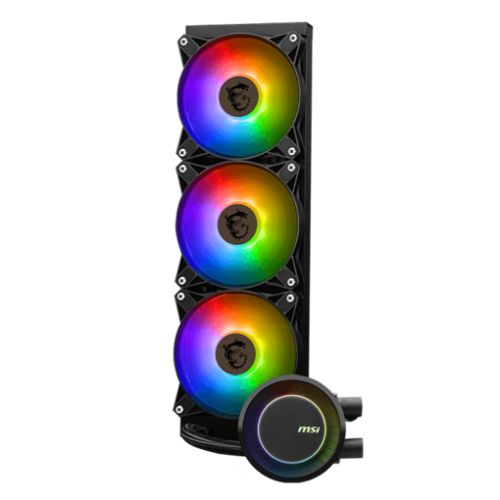 MSI MAG CORELIQUID E360 360mm Liquid CPU Cooler, 3x ARGB PWM Fans, Rotatable ARGB Blockhead, Black