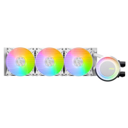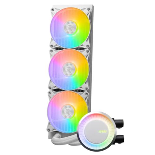 MSI MAG CORELIQUID E360 360mm Liquid CPU Cooler, 3x ARGB PWM Fans, Rotatable ARGB Blockhead, White