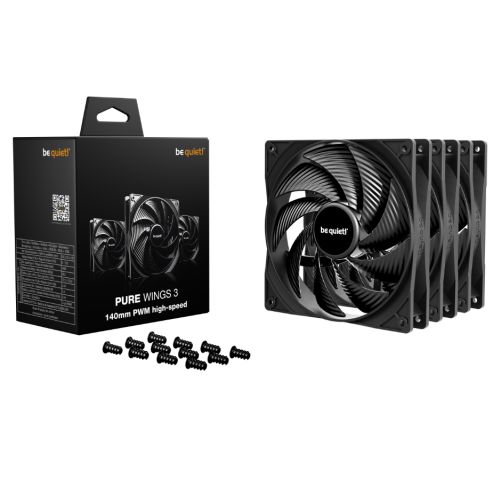Be Quiet! BL138 Pure Wings 3 PWM High Speed 140mm Case Fans (3 Pack), Rifle Bearing, 1800 RPM, Black
