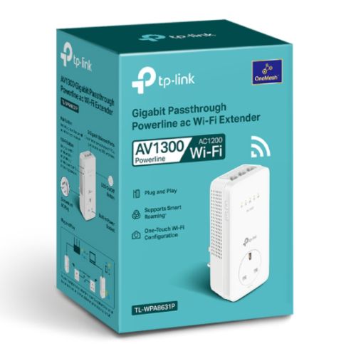 TP-LINK (TL-WPA8631P) AC1200 Wireless Dual Band Powerline Adapter, AV2 1300, AC Pass Through, 3-Port, Single Add-on Adapter