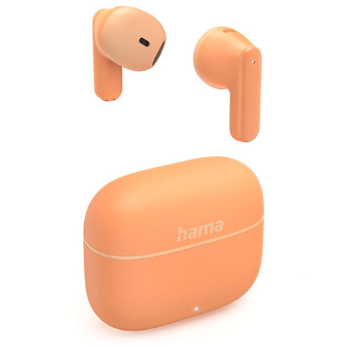 Hama (Freedom Light II) Bluetooth True Wireless Earbuds with Microphone, Touch/Voice Control, 20 Hour Battery, Charging/Carry Case, Orange