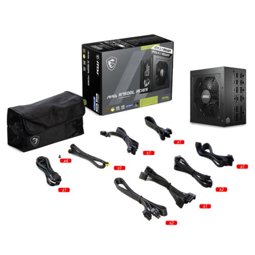 MSI 750W (MAG A750GL PCIE5) ATX 3.1 PSU, Fully Modular, 80+/Cybenetics Gold, LLC Full-Bridge, PCIe 5.1