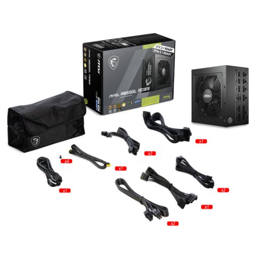 It has an output port that is compliant with PCIe 5.1 and Intel PSDG(Power Supply Design Guide) ATX 3.1, also the MAG A850GL PCIE5 power supply can hold up to 2x total power excursion and 3x GPU power excursion.