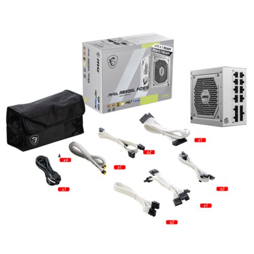 MSI 850W (MAG A850GL PCIE5 WHITE) ATX 3.1 PSU, Fully Modular, 80+/Cybenetics Gold, LLC Full-Bridge, PCIe 5.1