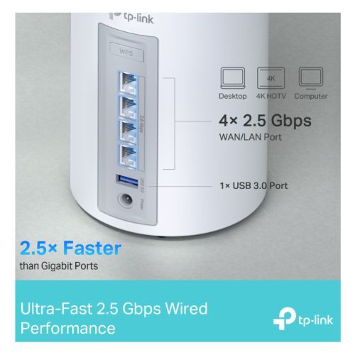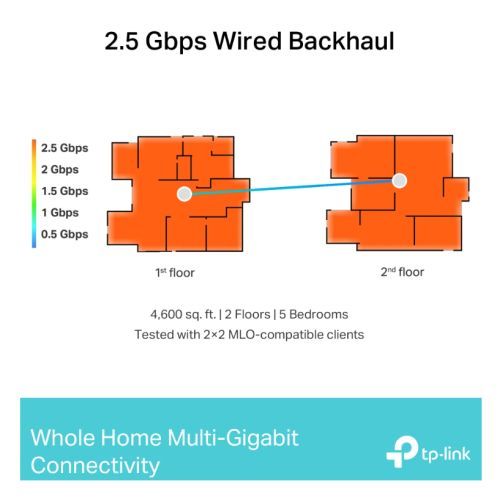 TP-LINK (DECO BE65) BE9300 Tri-Band Whole Home Mesh Wi-Fi 7 System, 2 Pack, 4x 2.5G Ports, MLO, Wireless/Wired Combined Backhaul