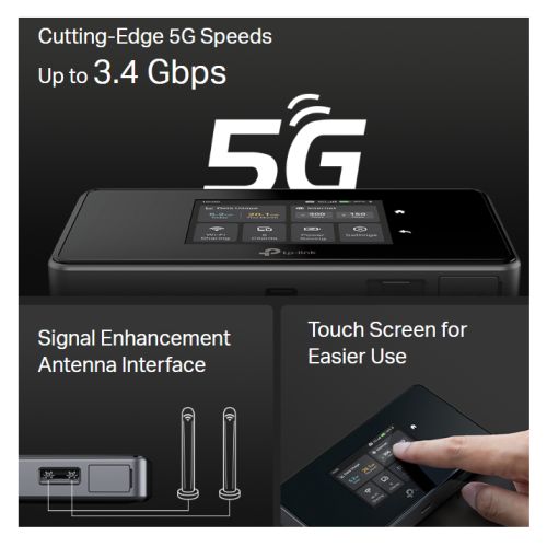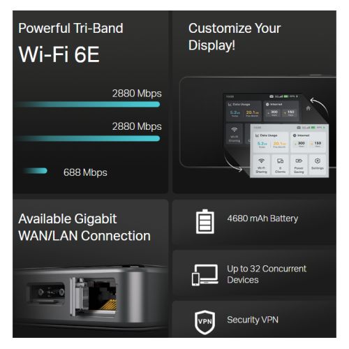TP-LINK (M8550) 5G Mobile Wi-Fi, 4680mAh Battery, Up to 32 Devices Simultaneously, Tri-Band AXE3600, Touch Screen, Gigabit WAN/LAN