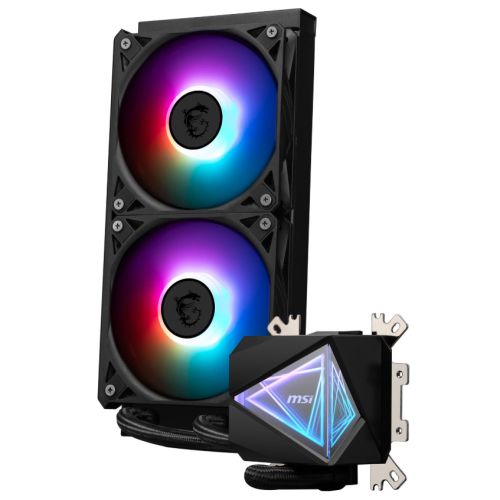 MSI MAG CORELIQUID I240 240mm Liquid CPU Cooler, 2x ARGB PWM Fans, Dual-sided Infinite Mirror Cooling Block, Black