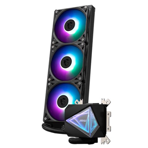MSI MAG CORELIQUID I360 360mm Liquid CPU Cooler, 3x ARGB PWM Fans, Dual-sided Infinite Mirror Cooling Block, Black