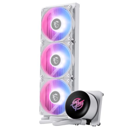 MSI MPG CORELIQUID P13 360mm Liquid CPU Cooler, 3x CycloBlade 9 ARGB Fans, Customisable 2.1" LCD, Hidden-Cable Design, White